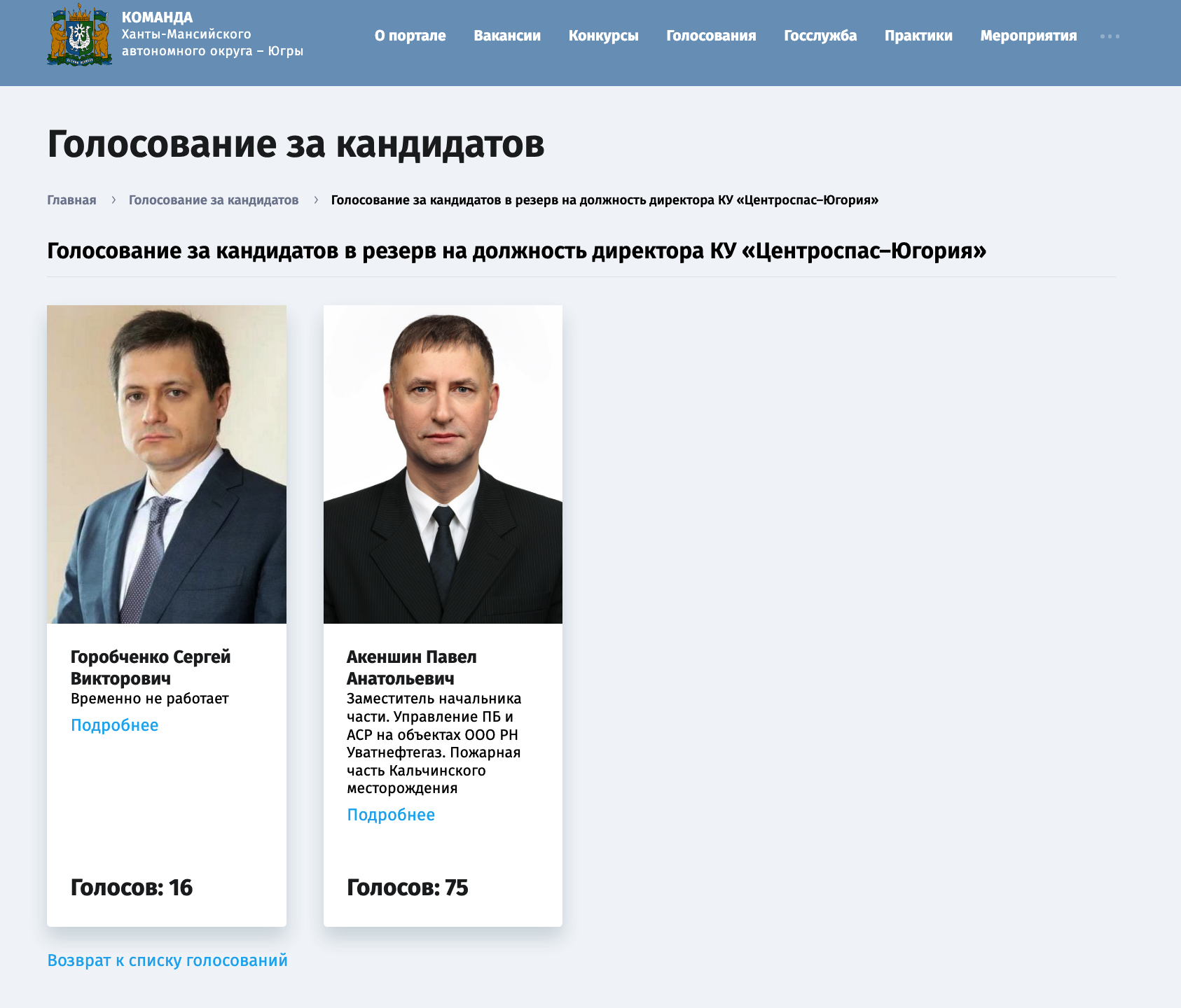 Завершившееся 30 декабря открытое голосование выявило значительный разрыв в общественной поддержке кандидатов. Наибольшее число голосов — 75 — набрал заместитель начальника пожарной части Кальчинского месторождения (ООО РН Уватнефтегаз) Павел Акеншин. В то время как Сергей Горобченко получил лишь 16 голосов, оказавшись в числе аутсайдеров. Тем не менее, по итогам решения конкурсной комиссии от 29 декабря, в резерв были включены оба претендента на одну и ту же руководящую позицию.