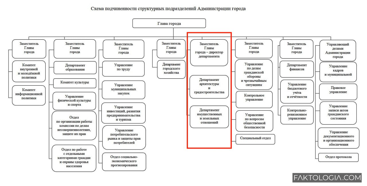 Из приложенной к распоряжению схемы следует, что претендовать на этот пост может руководитель одного из двух ведомств: департамента имущественных и земельных отношений, который возглавляет Оксана Виер, либо департамента архитектуры и градостроительства под руководством Ивана Сорича. Именно эти два подразделения ранее находились в зоне ответственности профильного замглавы Фокеева.