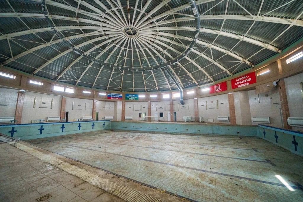 Спорткомплекс «Дельфин» в Лангепасе закрыт с 2022 года после повреждения кровли ураганом. Ранее власти обещали завершить капремонт в 2024 году, но сроки сорвали.