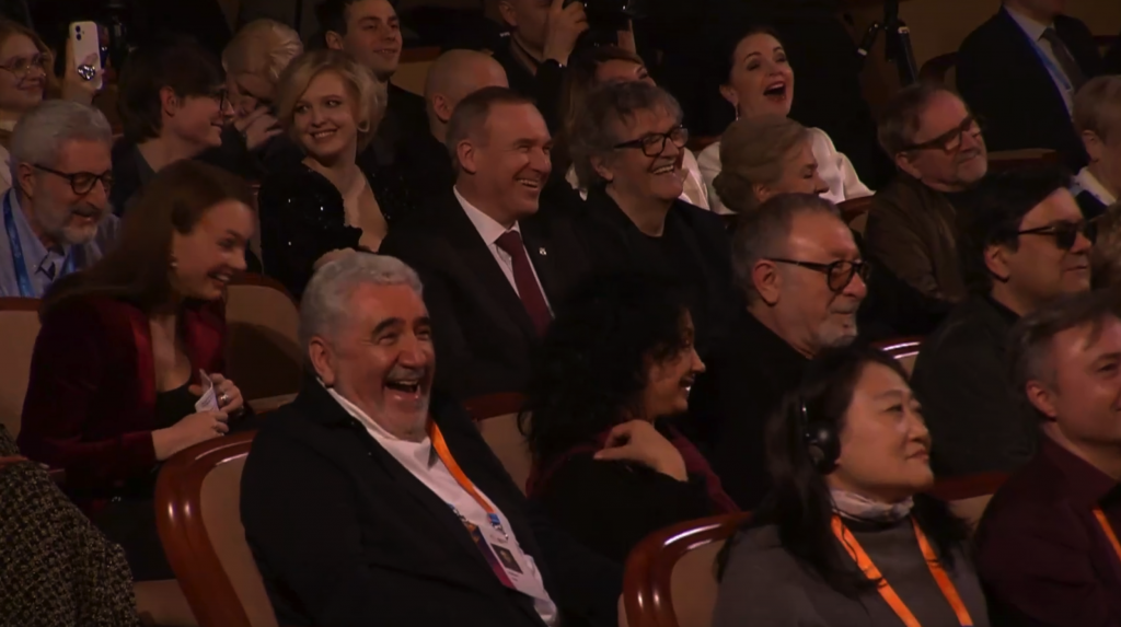 «Люди, которые говорят на разных языках, но понимают друг друга, — вещал Кухарук. — Понимают друг друга профессионалы, понимают друг друга зрители, поскольку всех объединяет язык кино».