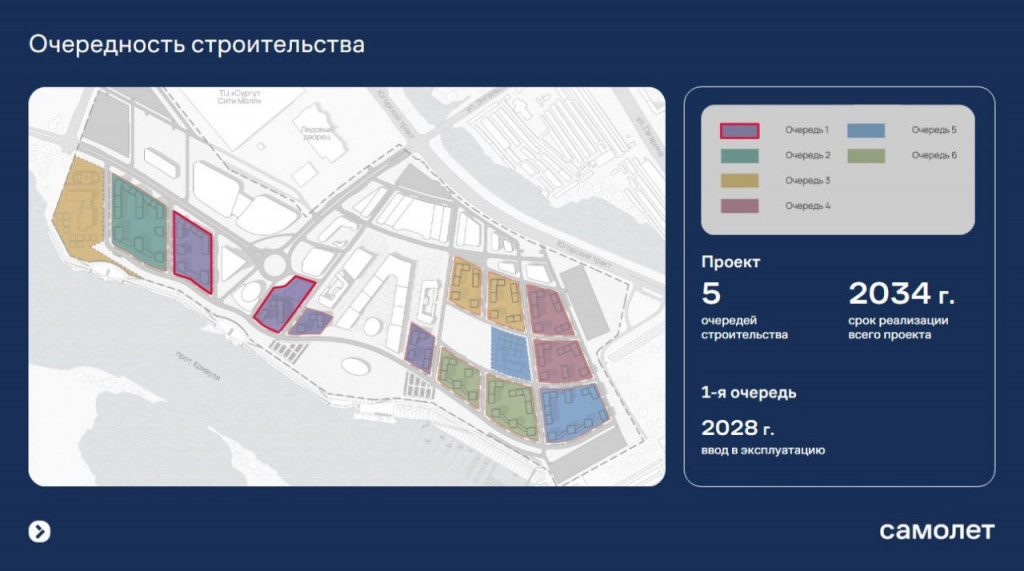 На сайте «Самолета» есть отдельный раздел, посвященный сургутскому проекту, где описаны базовые параметры будущей застройки. Старт продаж там обозначен третьим кварталом 2025 года, однако проектная документация или хотя бы проект архитектурных решений в открытом доступе отсутствует. По указанному в разделе телефону корреспонденту «Фактологии» сообщили, что в Сургуте действительно планируется строительство жилого комплекса, но точные даты как начала продаж, так и старта строительства назвать не смогли, предложив встать в лист ожидания.