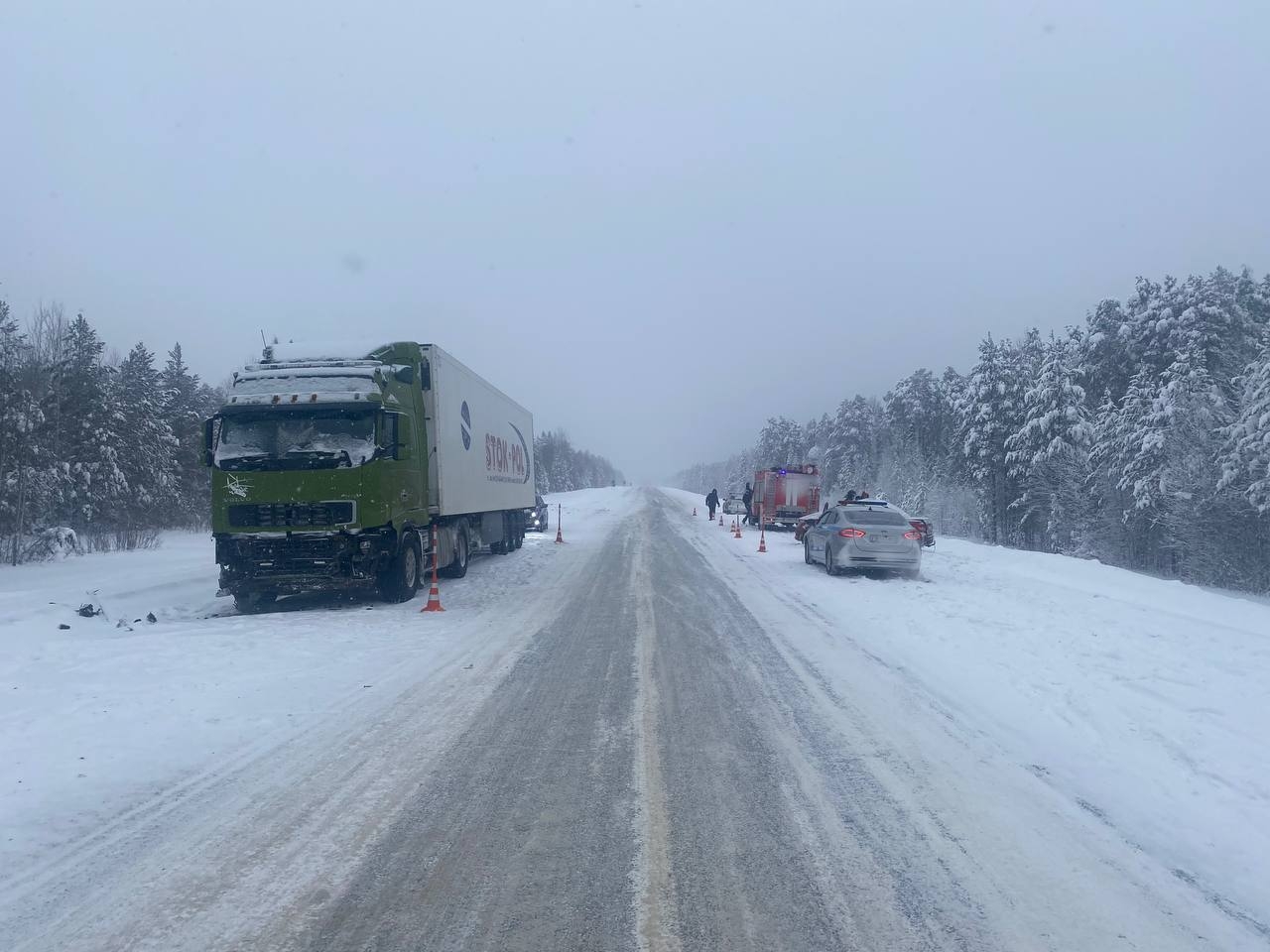 ДТП произошло на фоне ухудшения погодных условий из-за снегопада на уватском участке федеральной автодороги Тюмень – Ханты-Мансийск, где сегодня утром уже произошла смертельная авария. На 500-м километре столкнулись фура и легковой автомобиль. Предварительно, последняя выехала на встречную полосу. В ДТП погибли водитель и пассажир «Лады Гранта», их личности устанавливаются.